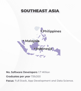 Also, Southeast Asia has the lowest average cost per developer ($18-$40 per hour).